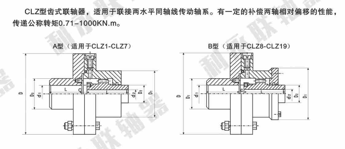CLZ型齒式聯(lián)軸器特別適用于低速重載工況,如冶金、礦山、起重運輸?shù)刃?業(yè)、也適用于石油、化工、通用機械等各類機械的軸系傳動。