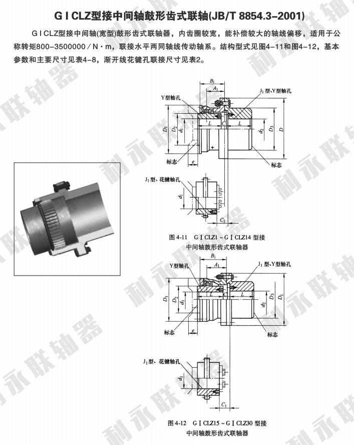 -GICLZ型—鼓形齒式聯(lián)軸器鼓形齒面使內、外齒的接觸條件 ,避免了在角位移條件下直齒齒端棱邊擠壓,應力集中的弊端,同時 了齒面摩擦、磨損狀況,降低了噪聲,維修周期長。外齒套齒端呈喇叭形狀,使內、外齒裝拆 方便。