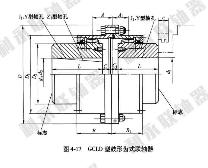 GCLD型接電動機軸伸鼓形齒式聯(lián)軸器基本參數(shù)和主要尺寸(JB/T 8854.1-2001) (單位:mm)