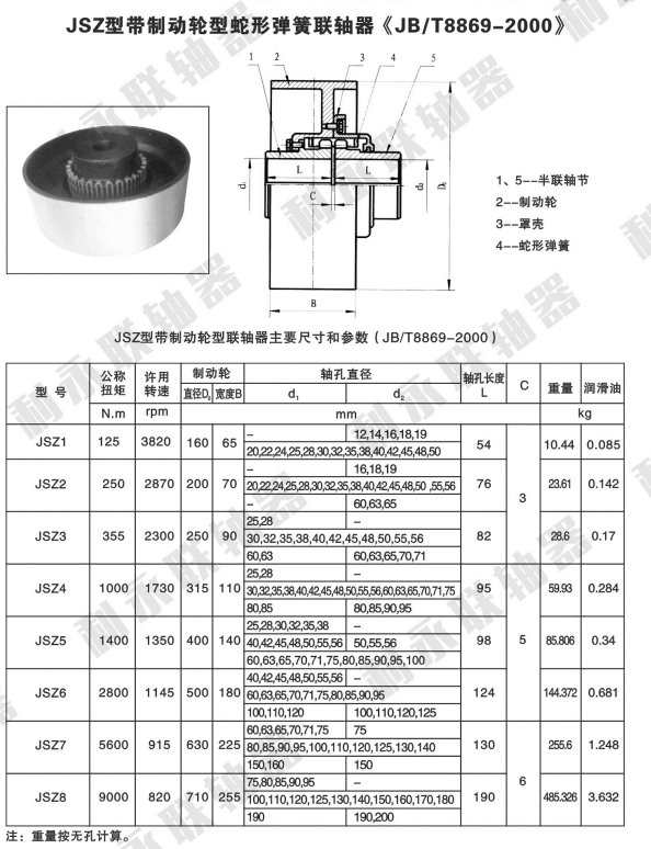 -JS型蛇形彈簧聯(lián)軸器是一種結(jié)構(gòu) 的金屬彈性聯(lián)軸器。它以蛇形彈簧片軸向嵌入兩半聯(lián)軸器的齒槽內(nèi),來實現(xiàn)原動機與工作機的聯(lián)接,由于簧片的 性能,從而很大程度上避免了原動機與工作機的共振現(xiàn)象,使用壽命遠高于非金屬彈性元件聯(lián)軸器;